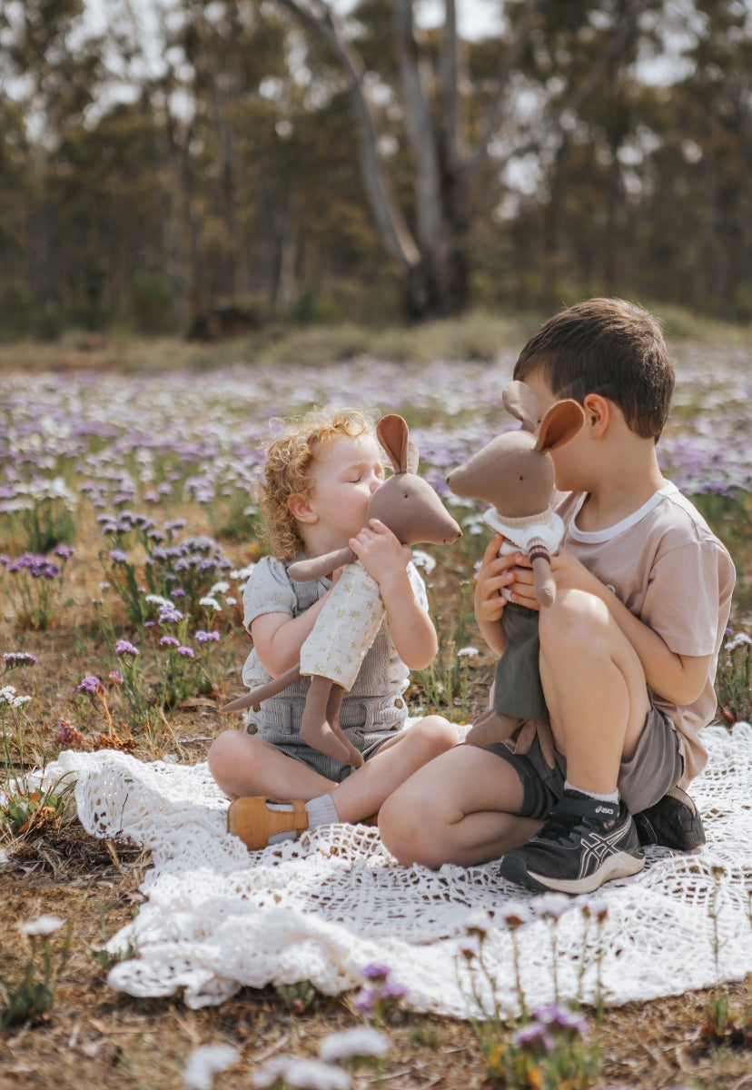 Did you know that a male kangaroo is actually called a Jack? His name isn’t just adorable, it’s the real term used for kangaroo dads in the wild. A sweet nod to his true Australian roots and the perfect touch of storytelling for your little one.