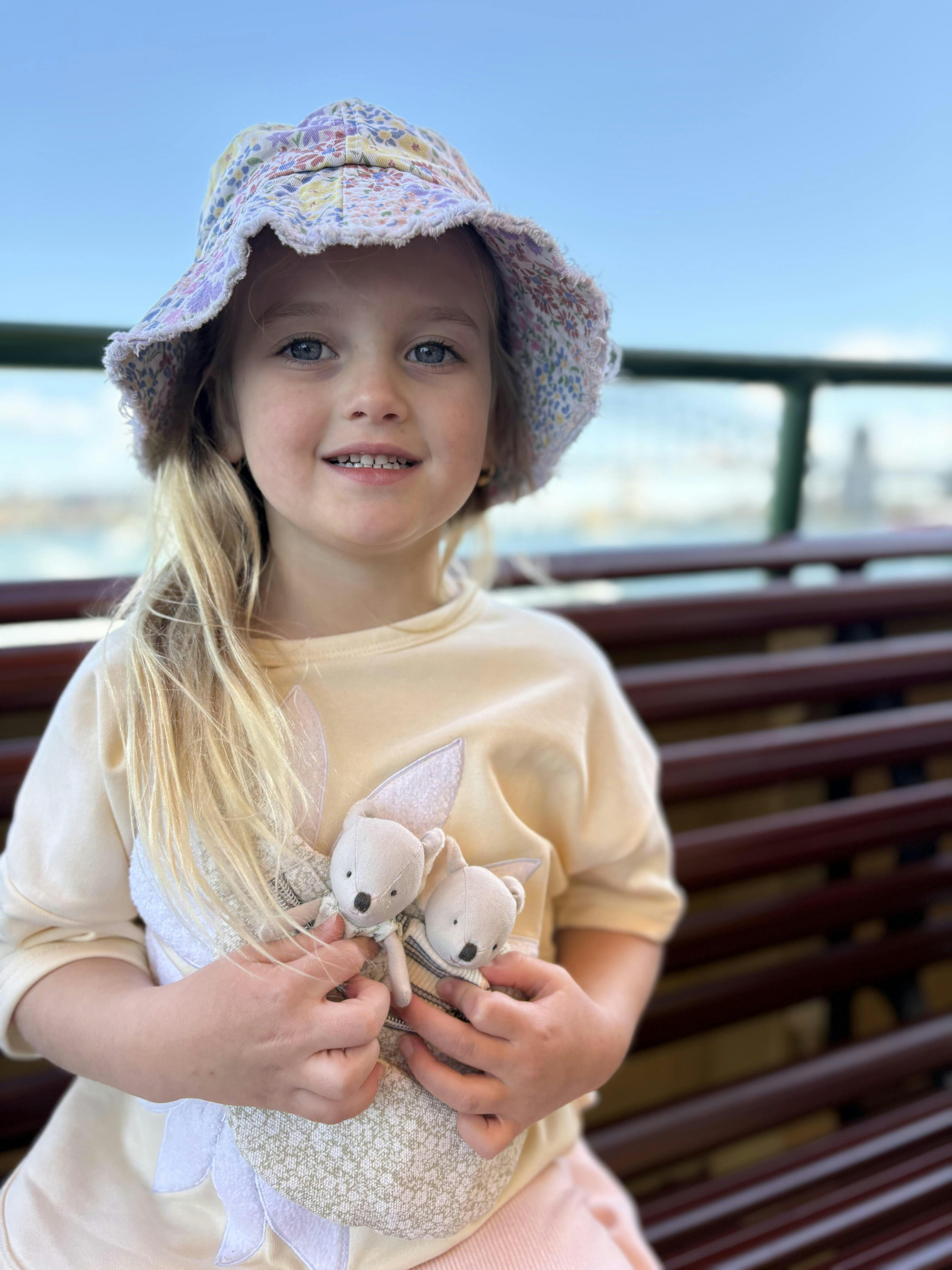 Bindi is a spirited, miniature heirloom plush with a wild imagination and an even wilder swing game. Whether she’s leading carousel races, soaring high on the playground, or dreaming up new adventures under the gum trees, this soft toy koala brings joy wherever she goes. But don’t let that sweet smile fool you... When the day’s done, Bindi earns her nickname, Napalot. Big adventures call for even bigger naps, and you’ll often find her curled up in a hammock, dreaming of tomorrow’s fun.